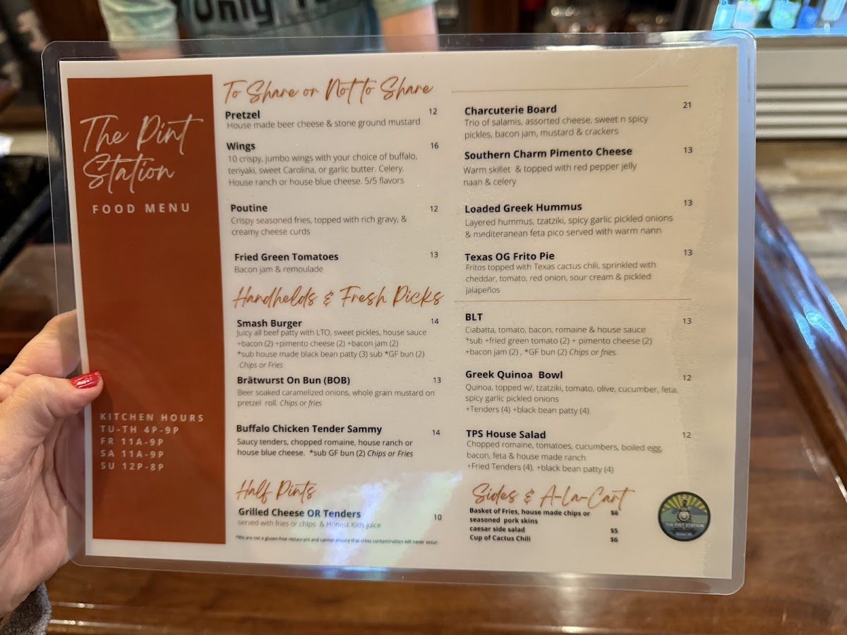 Introducing the Menu at The Pint Station Restaurant & Tap Room